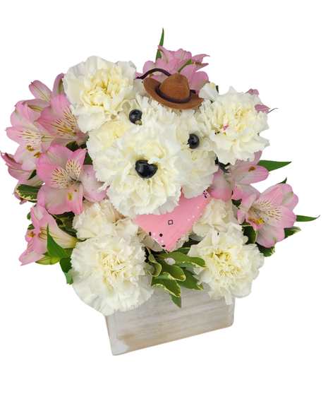 A cute county pup made of flowers