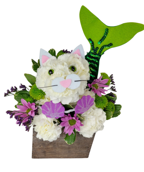 A mermaid cat made of carnations